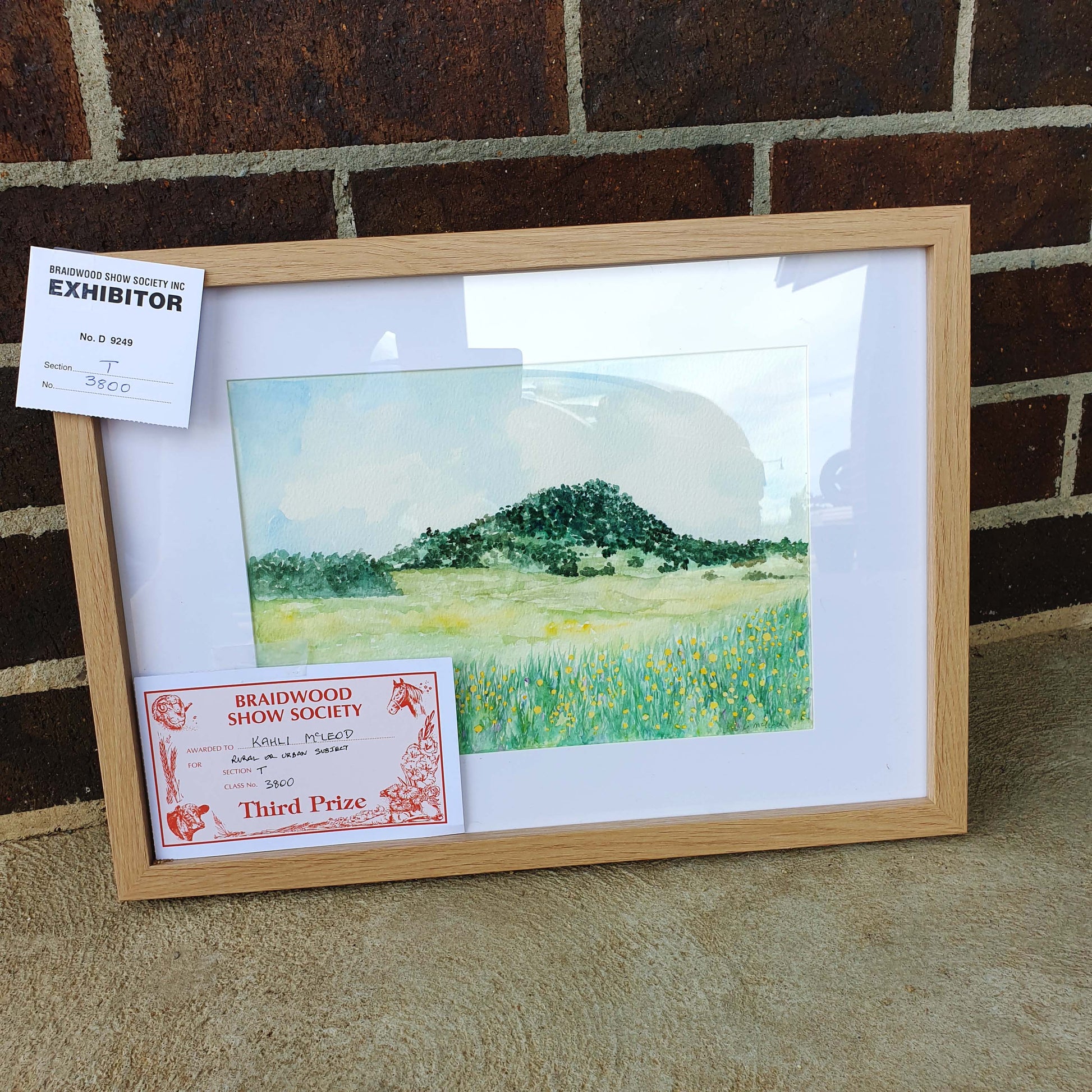 Original watercolour of Mt Gillamatong in Braidwood. This was my entry to the Braidwood Ag Show and was awarded third place for rural or urban landscape any medium.