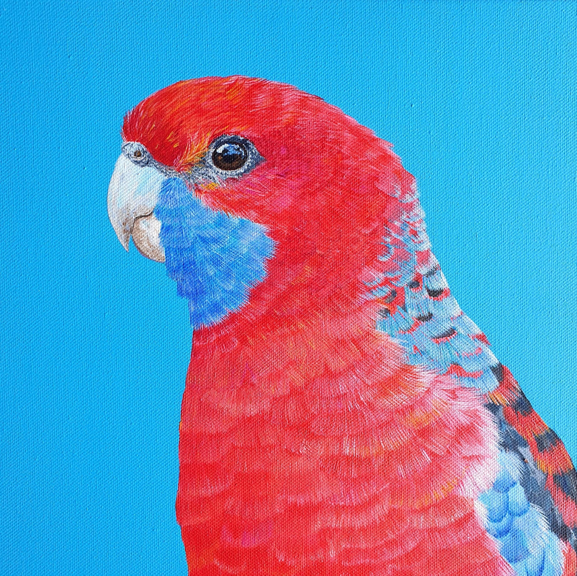 This bold and colourful piece features a Crimson Rosella. With rich red feathers, touches of blue, and a clear sky backdrop, this painting really lets the bird’s natural beauty shine. I focused on capturing the fine detail in its plumage which makes these birds so special. It’s a bright, eye-catching piece that brings a splash of the Aussie bush indoors.