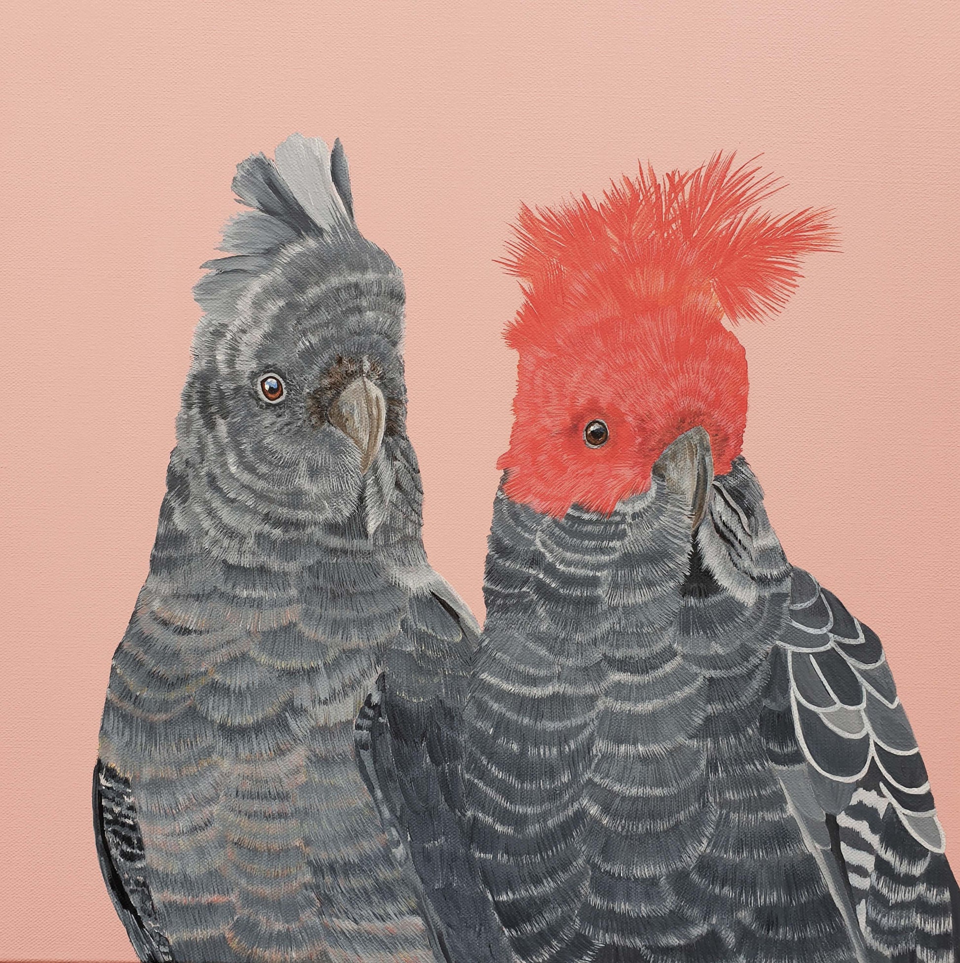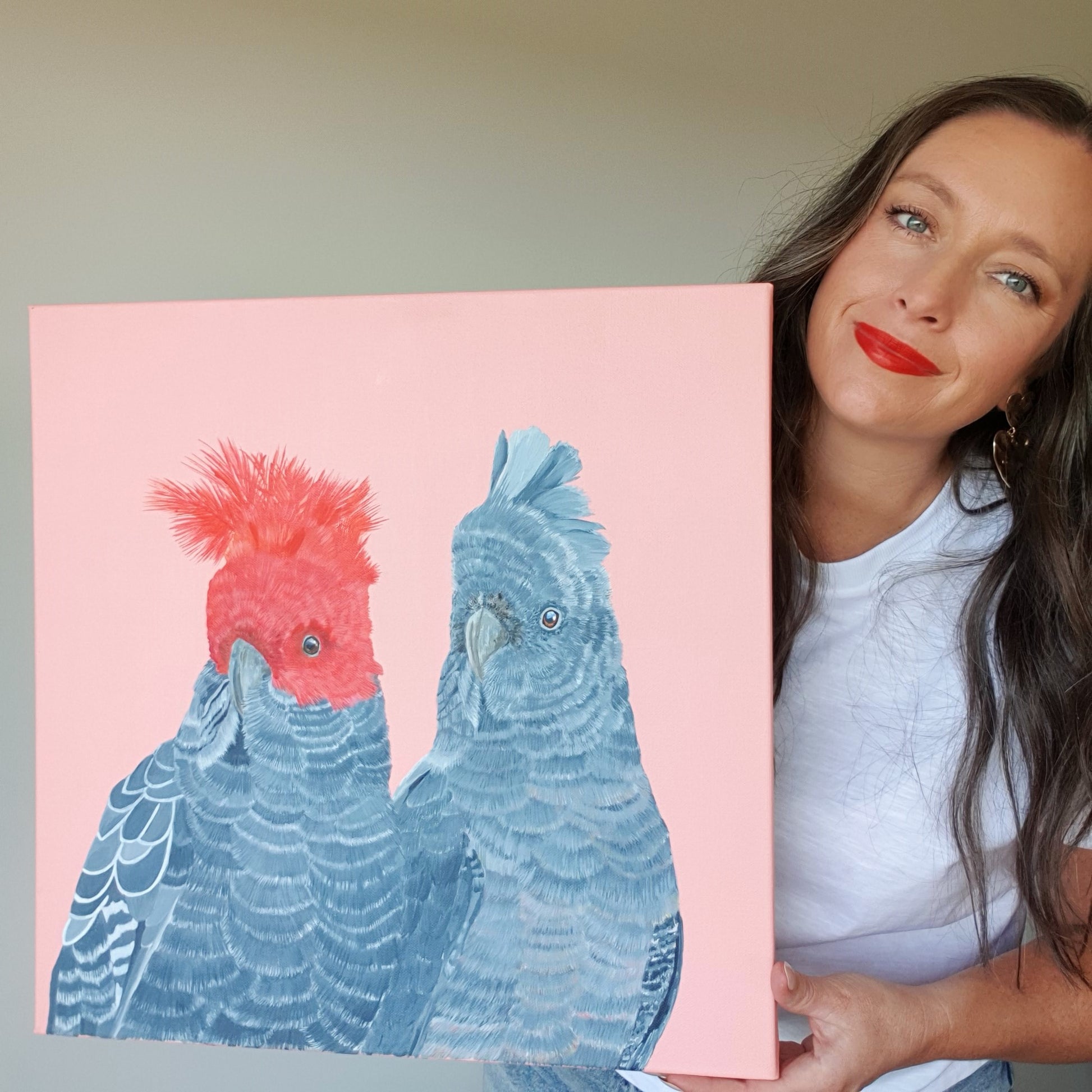This fancy pairing of Gang Gangs will add a pop of colour in your home who doesn’t love a colourful hairstyle. I always return to painting Gang Gangs my first large acrylic painting I sold was a male gang gang and it now holds a sentimental place in my heart.