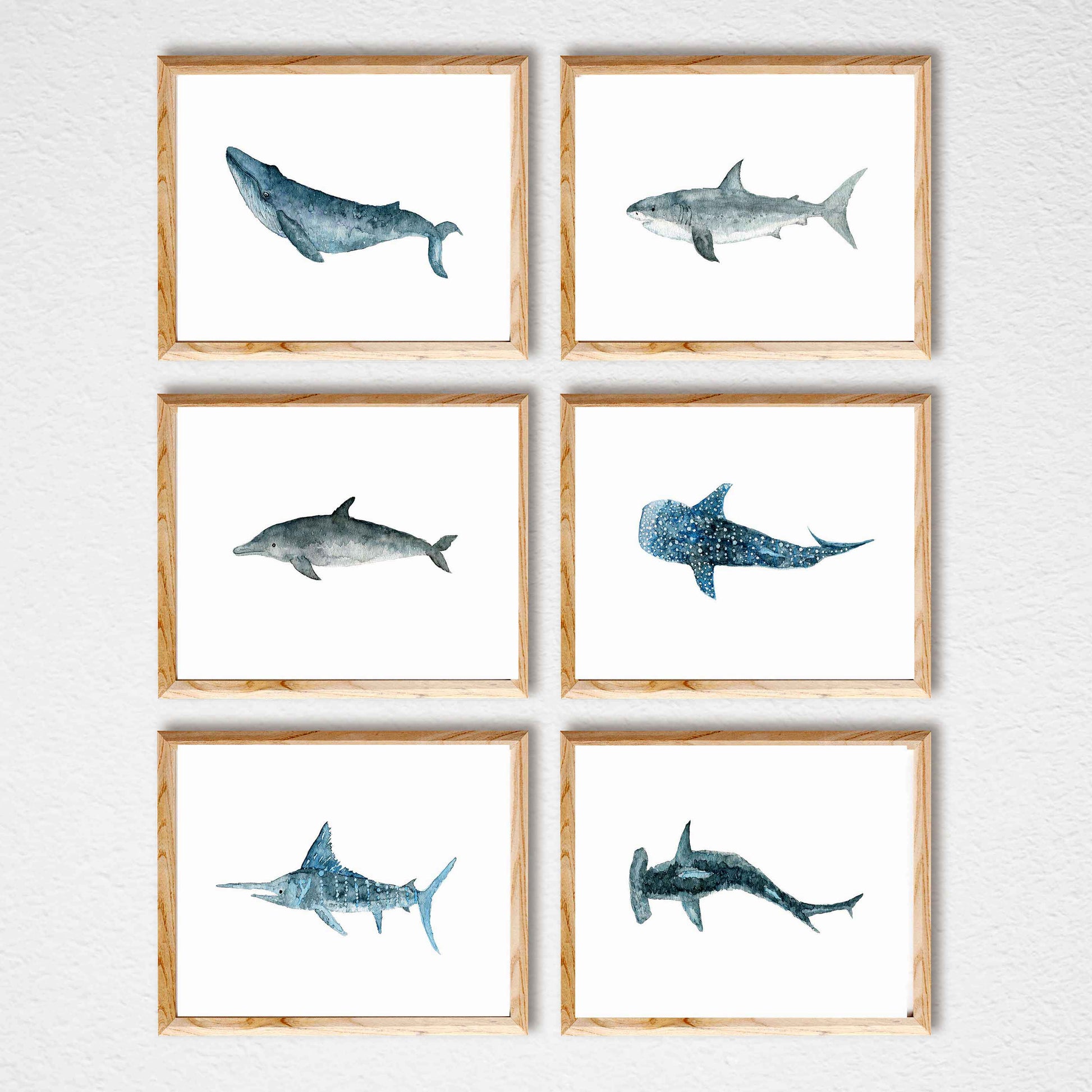 This collection features some of Australia’s best-known animals the Humpback whale, great white shark, bottle nose dolphin and marlin. Every animal has been hand painted by myself using watercolour. My original painting is then reproduced for you using archival quality products to produce high quality art prints for you to enjoy or gift. Every process from start to finish is completed by me in my art studio in rural Australia. My hope is that this artwork sparks curiosity and conversations as your child grows about our native wildlife. These prints are also versatile enough for adults I've had many customers decorate office spaces and beach themed areas too.