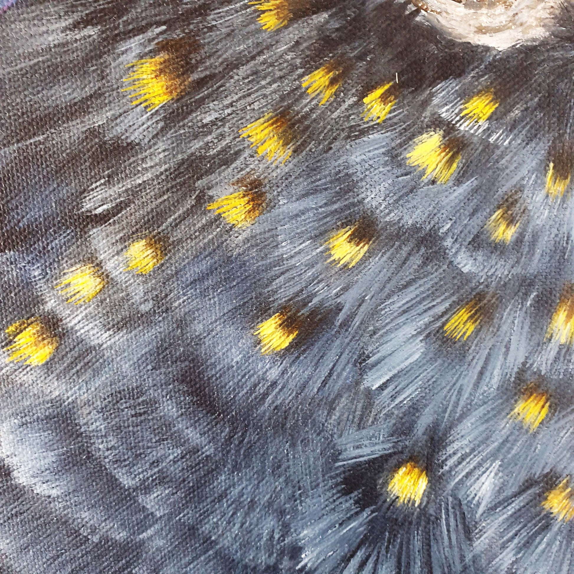 Bold, expressive, and full of character—just like the bird itself. I live painted this piece during my exhibition as part of The Arts Trail run by QPRC. The yellow-tailed black cockatoo, with its dramatic crest and golden markings, was a joy to bring to life and quickly became a crowd favourite.