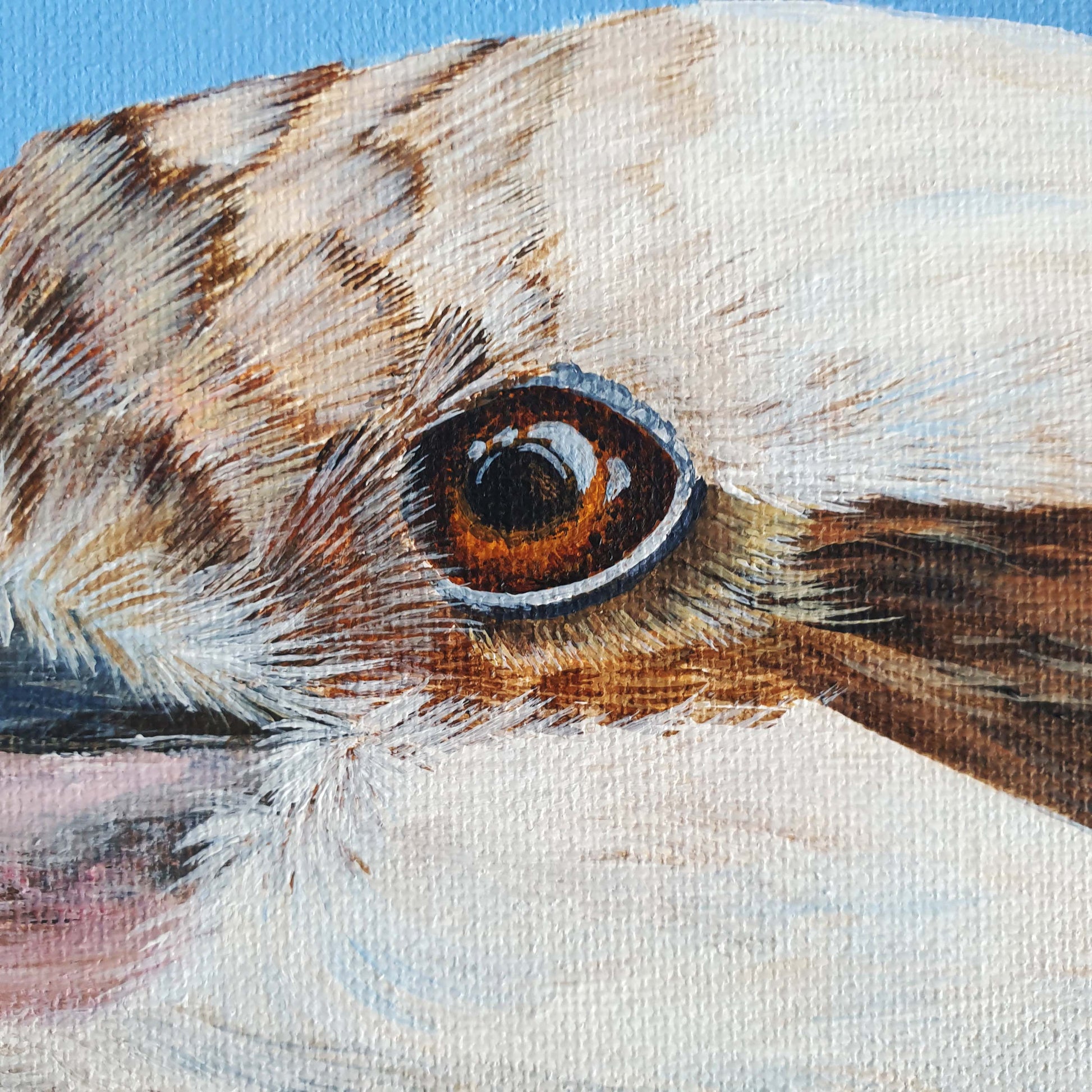 This cheeky kookaburra is all personality, painted in close-up against a bold blue background. I wanted to focus on its expression and those textured feathers that always catch the light. It’s a simple, confident piece that brings a bit of laughter and character to the wall—just like the bird itself.