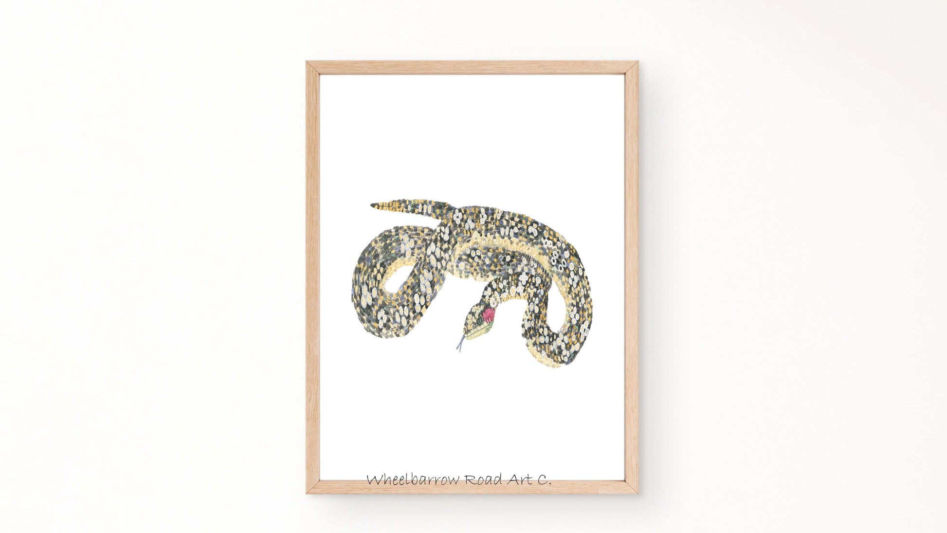 This collection features some of Australia’s best-known animals the red belly black snake, Christmas beetle, yabbie, goanna, cicada and python. . Every animal has been hand painted by myself using watercolour and gouache. My original painting is then reproduced for you using archival quality products to produce high quality art prints for you to enjoy or gift. Every process from start to finish is completed by me in my art studio in rural Australia. My hope is that this artwork sparks curiosity and conversations as your child grows about our native wildlife. What Australian Animal might you see next?