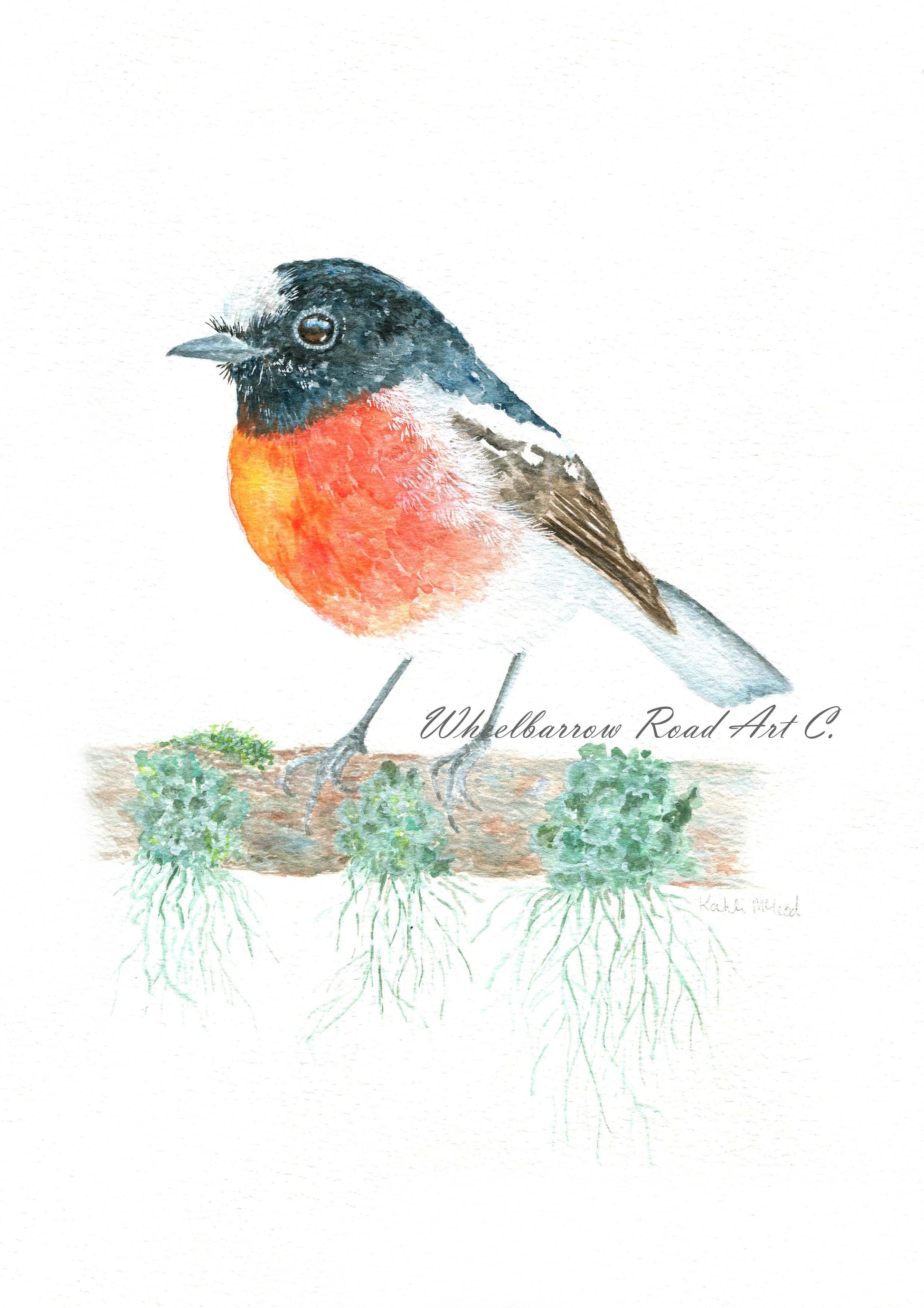 Original mixed media painting, this was my entry to the Braidwood Agricultural show which received first place. This painting is of a scarlet robin which is a threatened species in the Braidwood area.